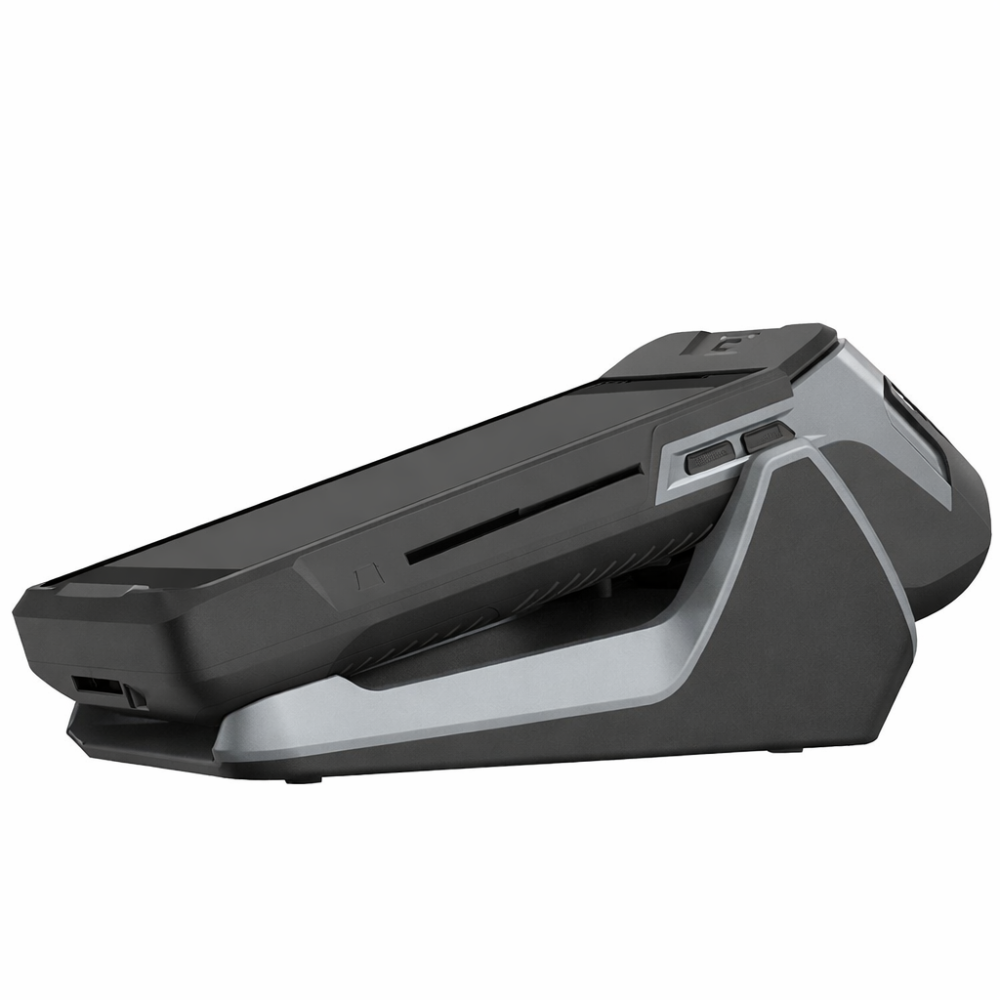 Inteligentné nabíjanie: Neustále udržiava batériu v 100% stave, zatiaľ čo terminál pevne drží v ergonomickom sklone pre pohodlné zadávanie PIN kódu zákazníkom.