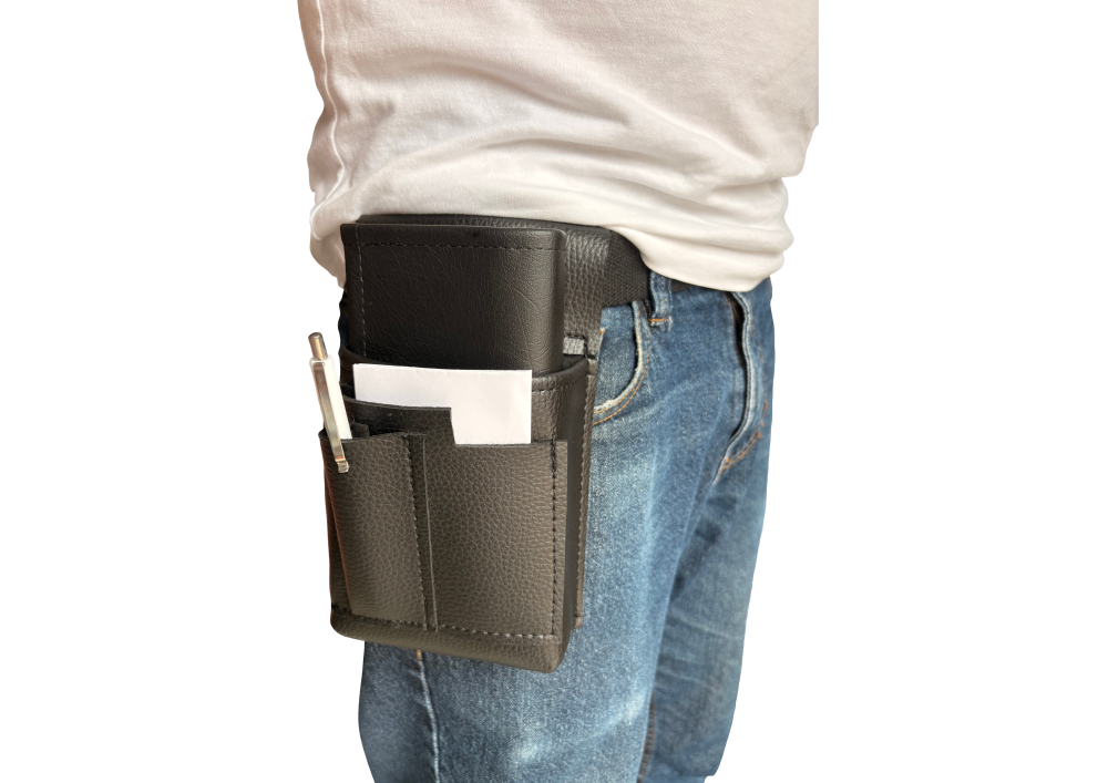 Čašnícke púzdro vhodné na každodenné používanie v gastronómií. 1 priehradka pre peňaženku, 1 mini priehradka pre pero a 1 mini priehradka pre lístky